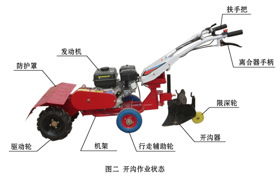 該機(jī)設(shè)計(jì)合理,結(jié)構(gòu)緊湊,扶手把高度4檔調(diào)整,左右180度可調(diào),操作舒適方便,作業(yè)部件插銷連接,換裝方便快捷。主要用于溫室大棚、果園、及丘陵狹小地塊旋耕、鋤草和在已旋或已耕地塊上開溝作業(yè)。